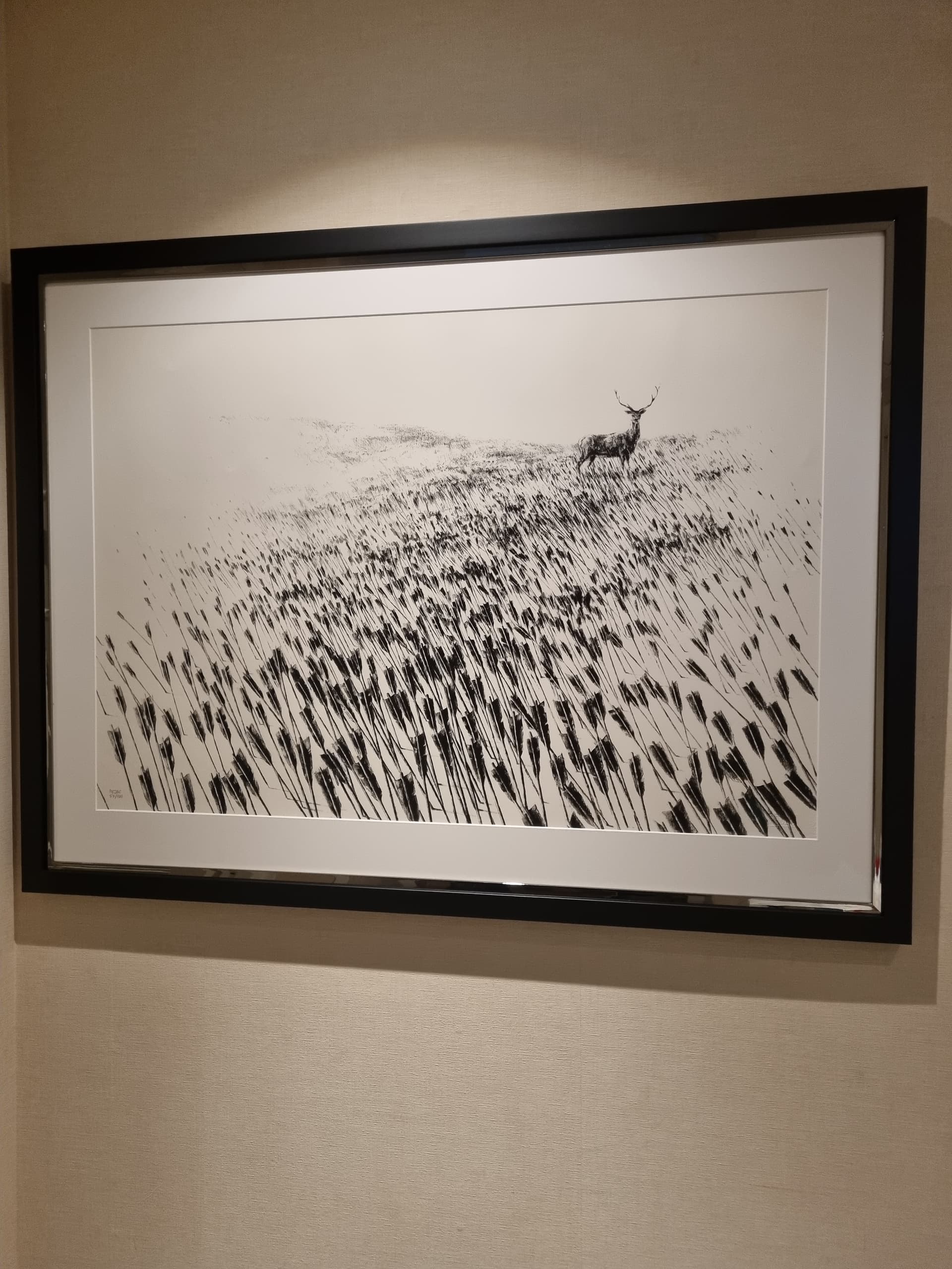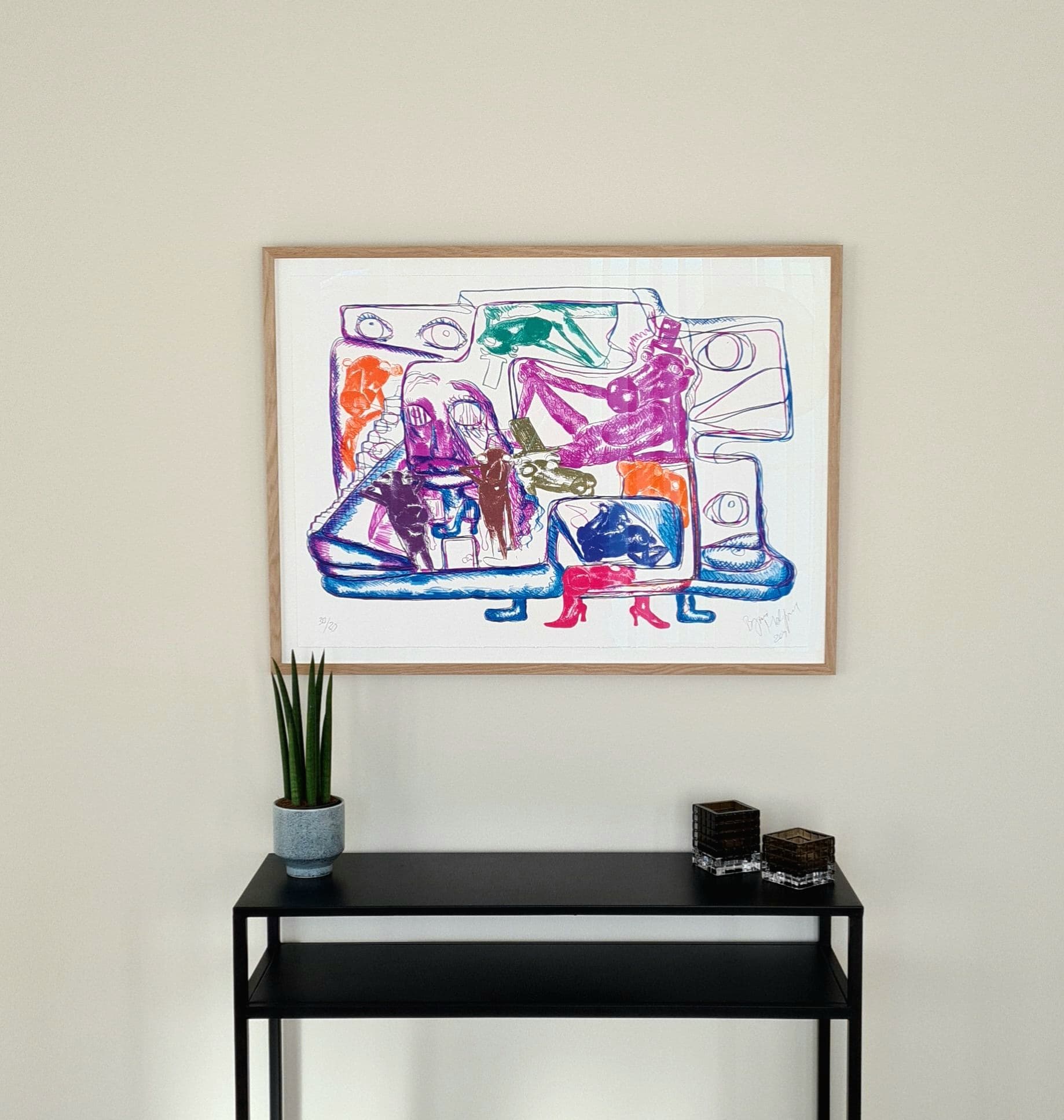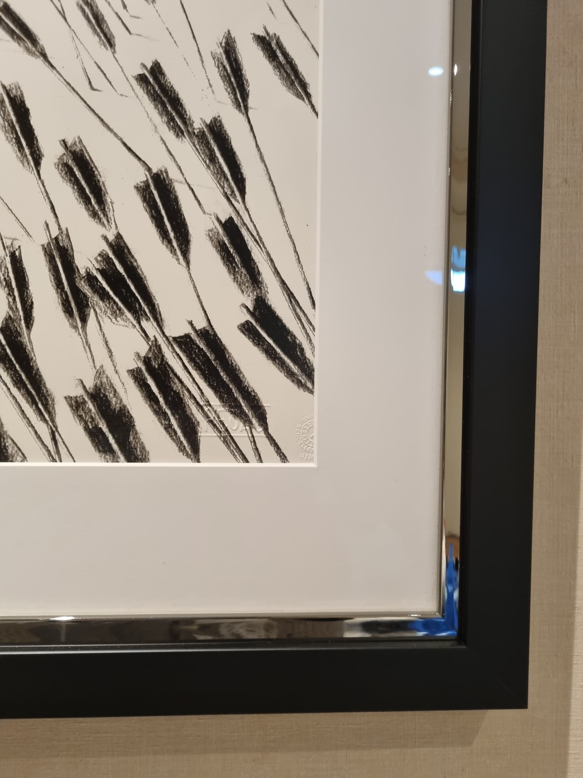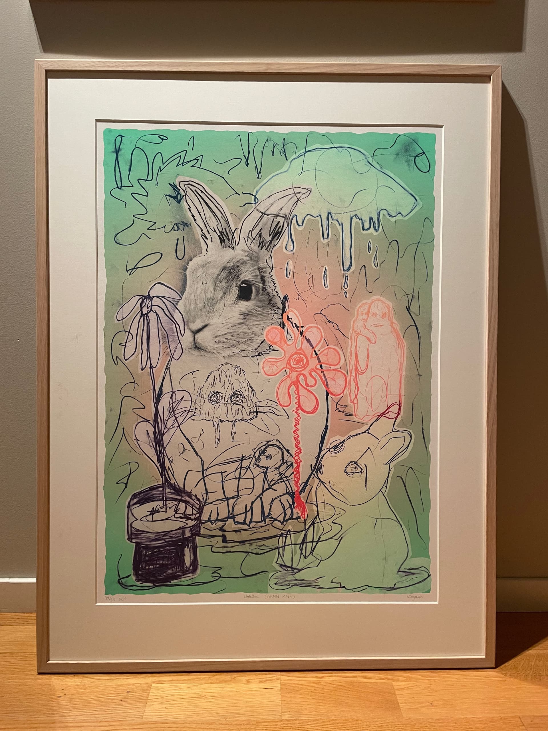 Den kjempefete etsinga til Isabella Cancino. Mulig denne reinnrammes på sikt da bakplata i offwhite ble fortsatt veldig hvit i forhold til papiret. Sort bakplate evt pp kanskje. Vi får se. Del gjerne ferdig innrammede dere andre som kjøpte denne også. Ett kjempeverk av en kommende stjerne på kunsthimmelen.