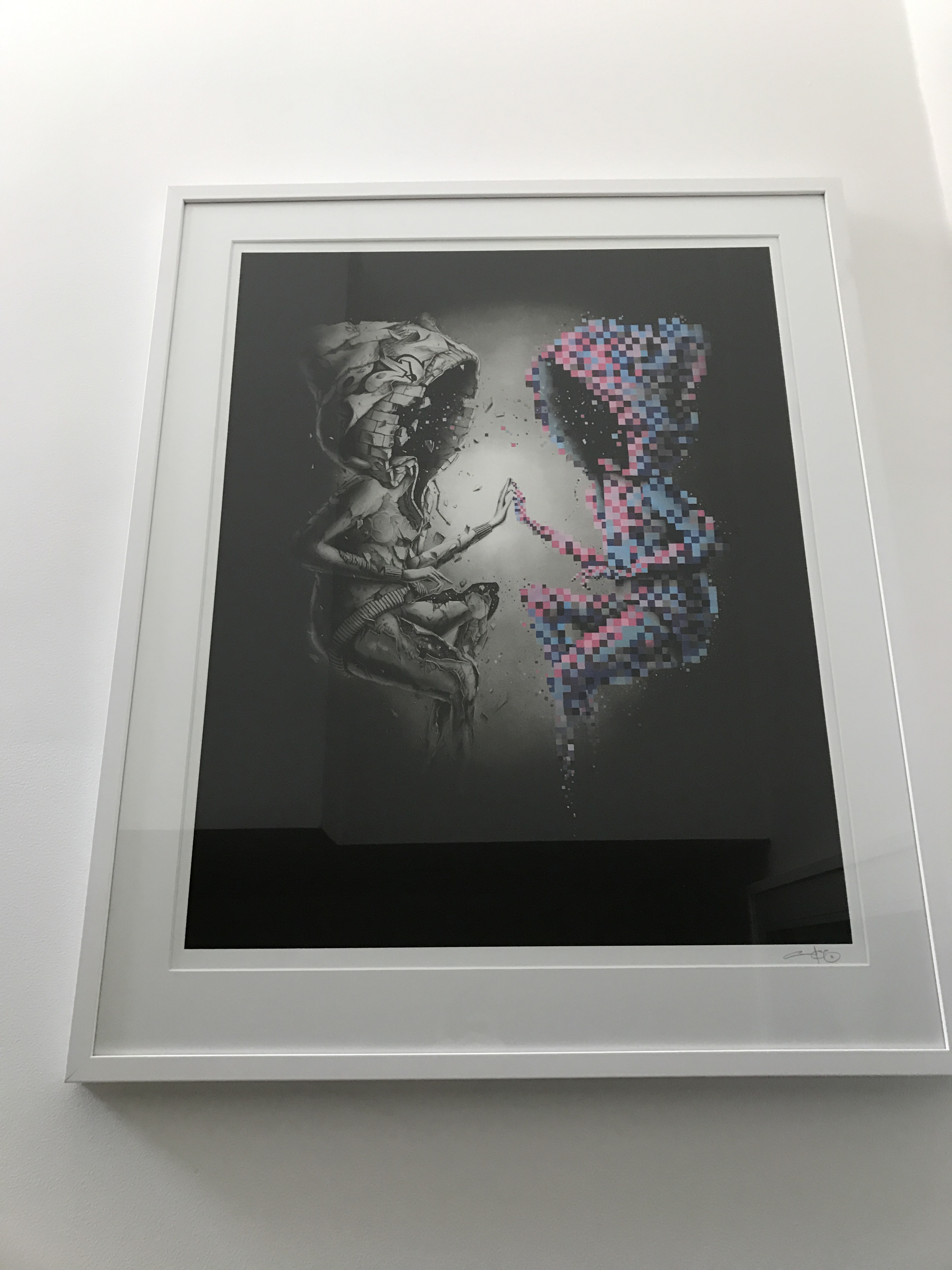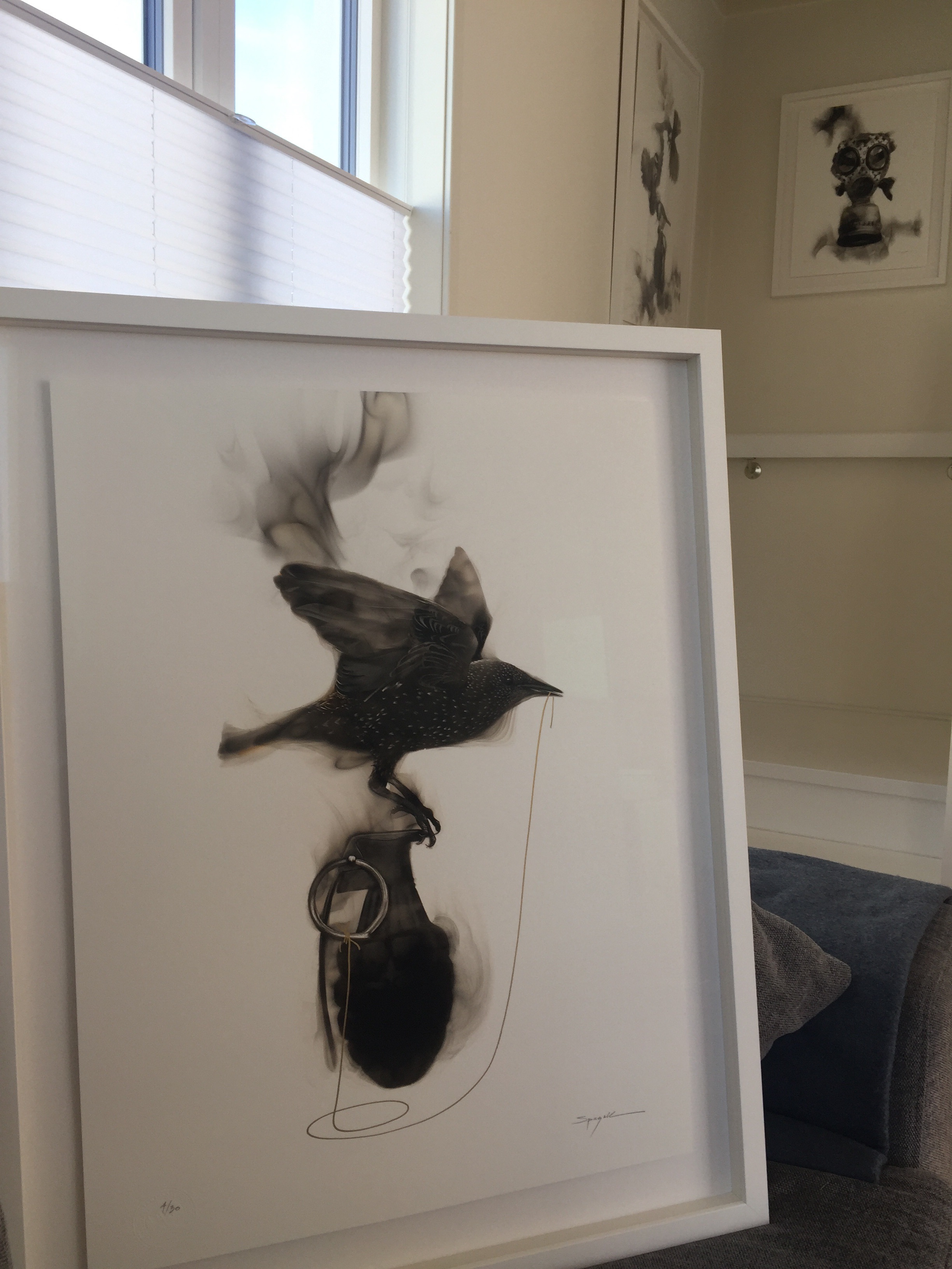 Jeg har hatt lyst på “Black Mirror” av Pez i en evighet. Angret på at jeg ikke handlet med en gang jeg så det “live”. Et hyggelig medlem på forumet var, så snill å selge meg en kopi tidligere i vinter. Siden det allerede var rammet inn puttet jeg “Twin Pix” inn i samme oppsettet. Endelig fikk jeg tatt det ut av skuffen og opp på veggen!