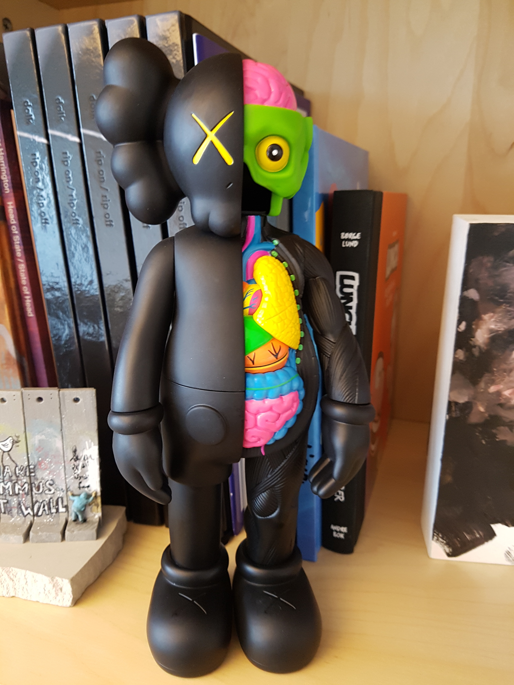 Lenge siden jeg fikk den, men pakket den nylig ut og har nå fått plassert den i hyllen. Må si at en Kaws companion tok seg bra ut. Dette er open edition (black - flayed) og var verdt de ca 2.000 den kostet. Veldig fornøyd, men tror jeg må få en til ved siden av som ikke er flayed.