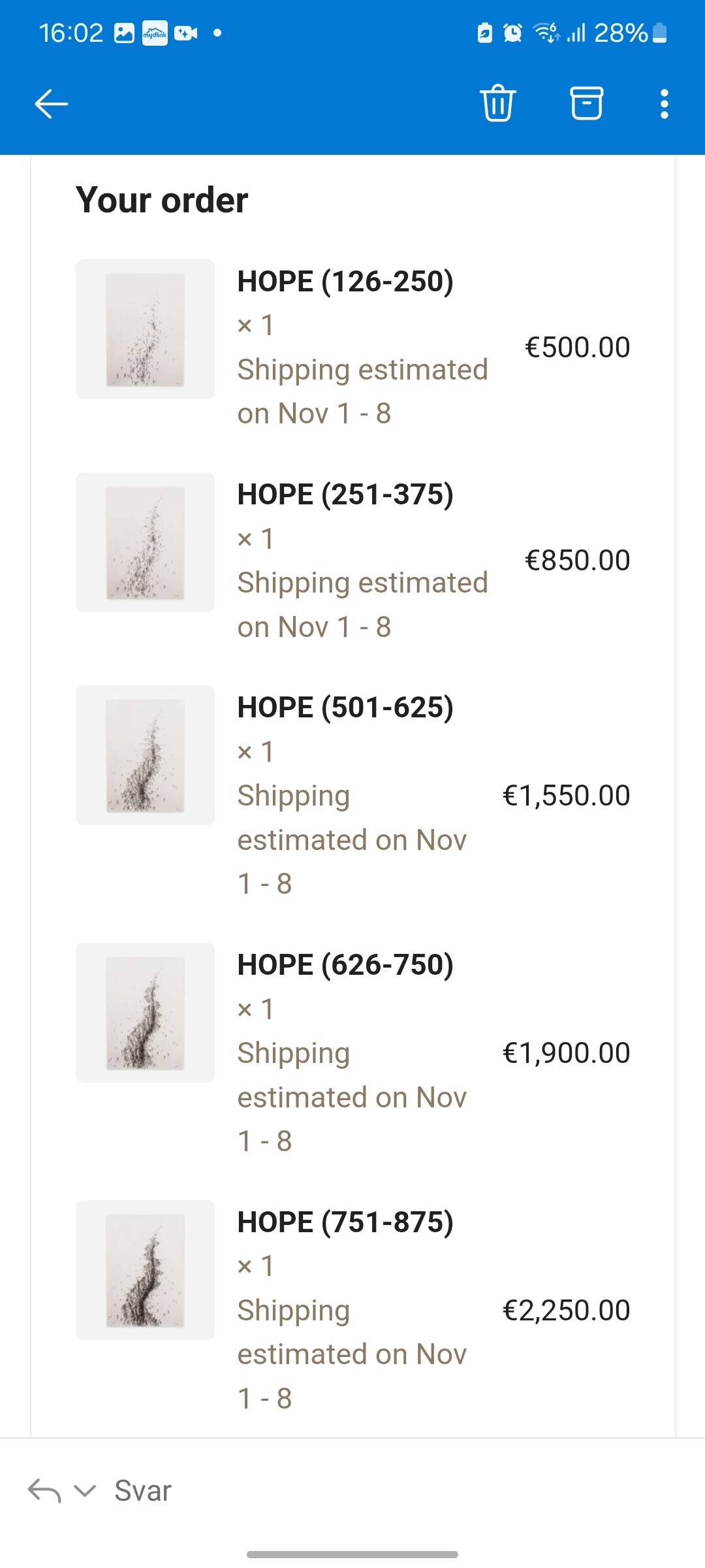 Apropos nummerering igjen - så ‘trikset’ for å få store opplag / postere inn til Norge uten moms (altså for de som utgir trykk / postere) er å nummerere alle 1/1 også er vi good? Fryktelig lett løsning da 10 000 postere som alle er nummerert 1/1 (er jo noen minimale forskjeller på alle kopier pga kopimaskin, trykkplate etc). Vet dette er å sette ting veldig på spissen - slik hele denne diskusjonen er i grunn.