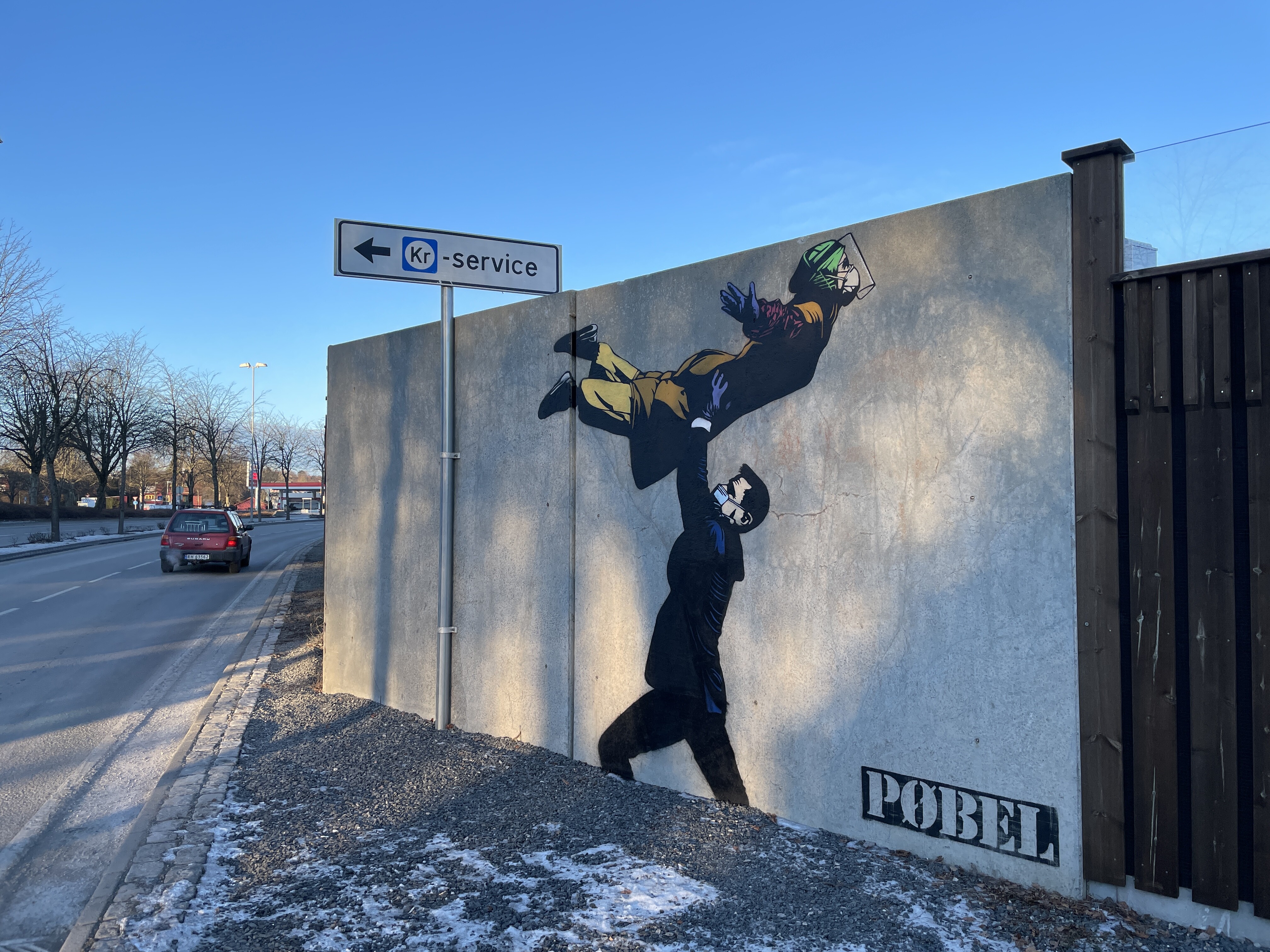 Det er ikke bestilt. Det er ikke et oppdrag noen har betalt for. Det er bare malt i bitende kulde i løpet av natten av Pøbel, kunstneren fra Bryne som fortsatt bare er Pøbel uten annet navn.