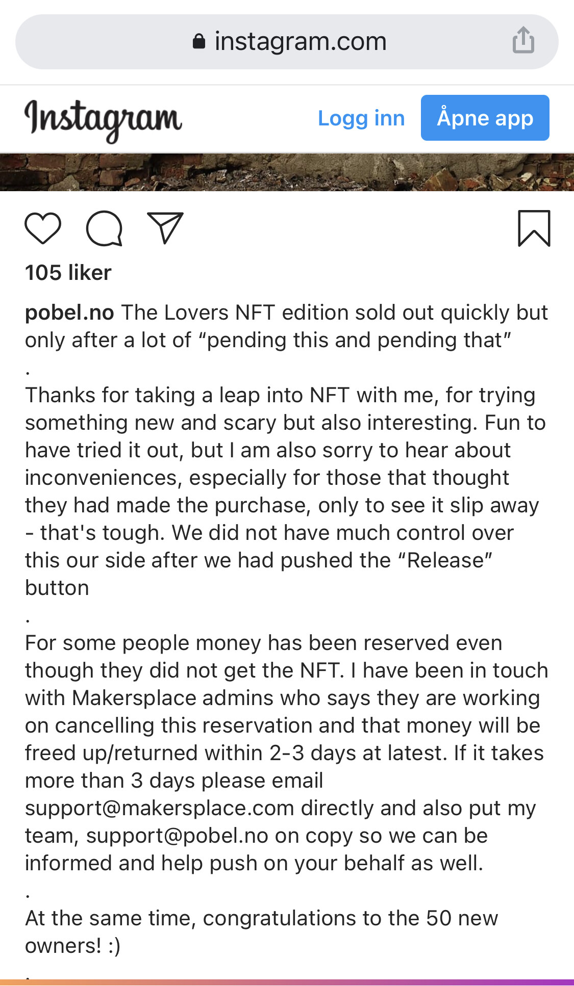 Når man prøver noe nytt, og ender opp med gallesmak i kjeften, frister det ikke til gjentakelse. WTF NFT. Regner med pengene returneres til konto iløpet av et par dager… var et skudd for baugen for både NFT og Pøbel dette… sjøl om han er et helt uskyldig ‘offer’ her.