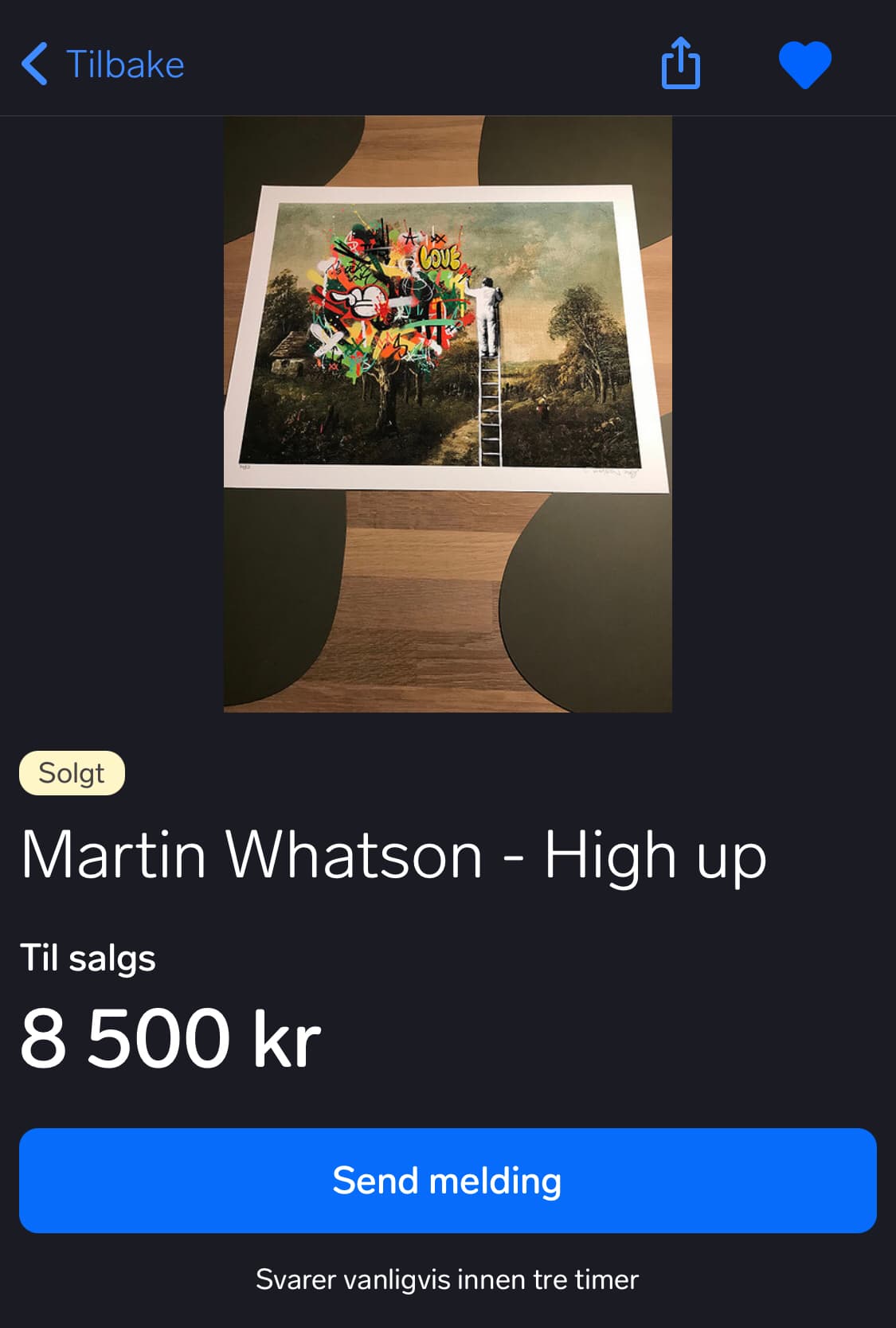 Har en High Up fra Martin Whatson som dessverre må gå. Den er innrammet profesjonelt med ArtGlass.