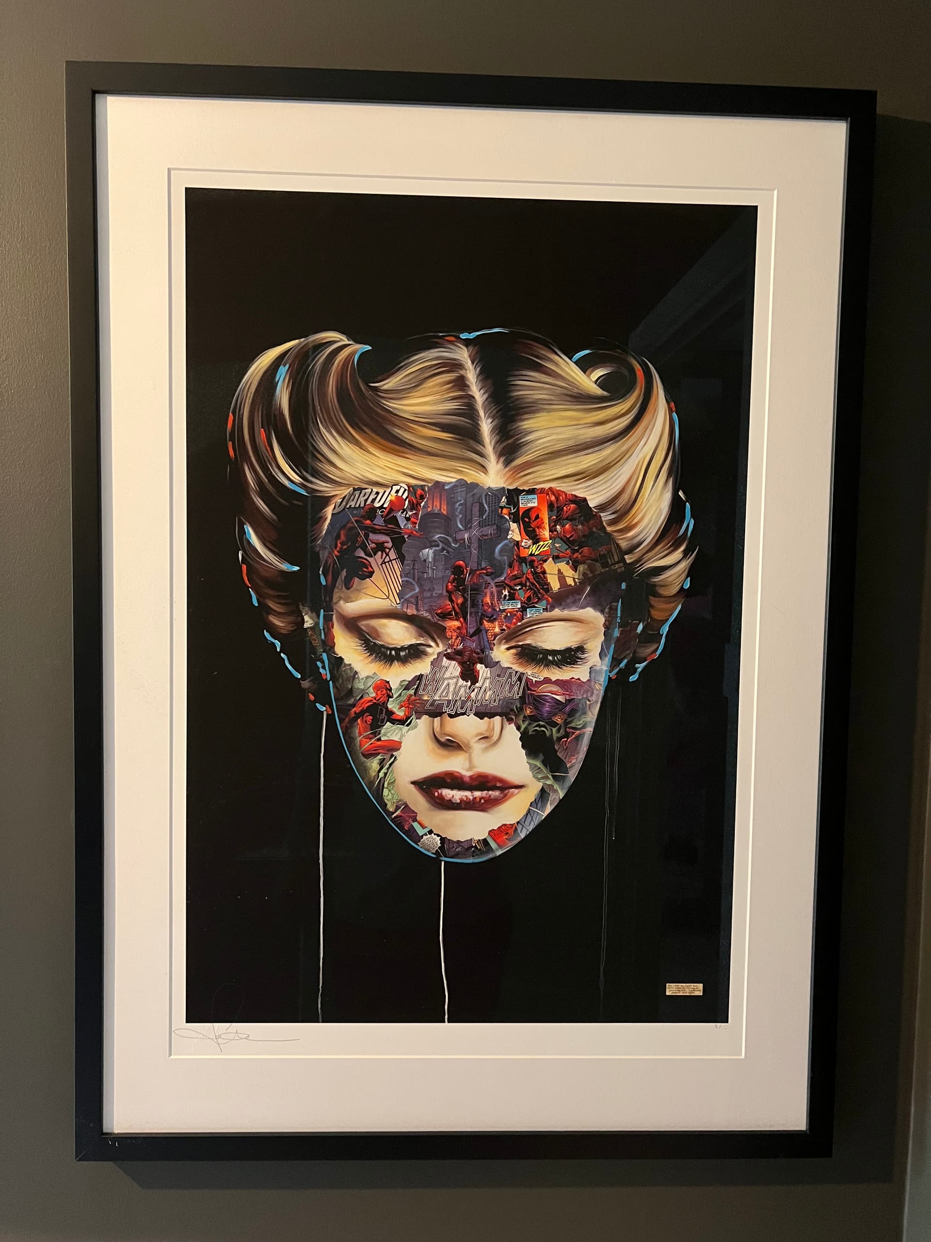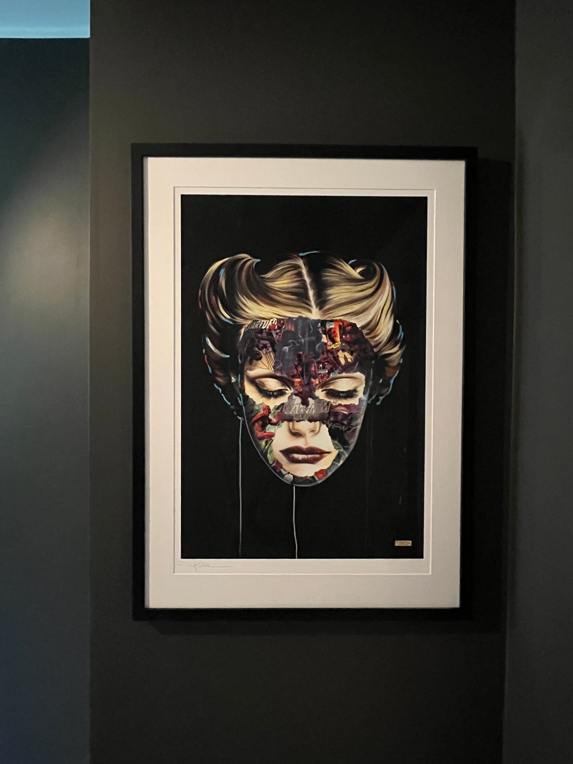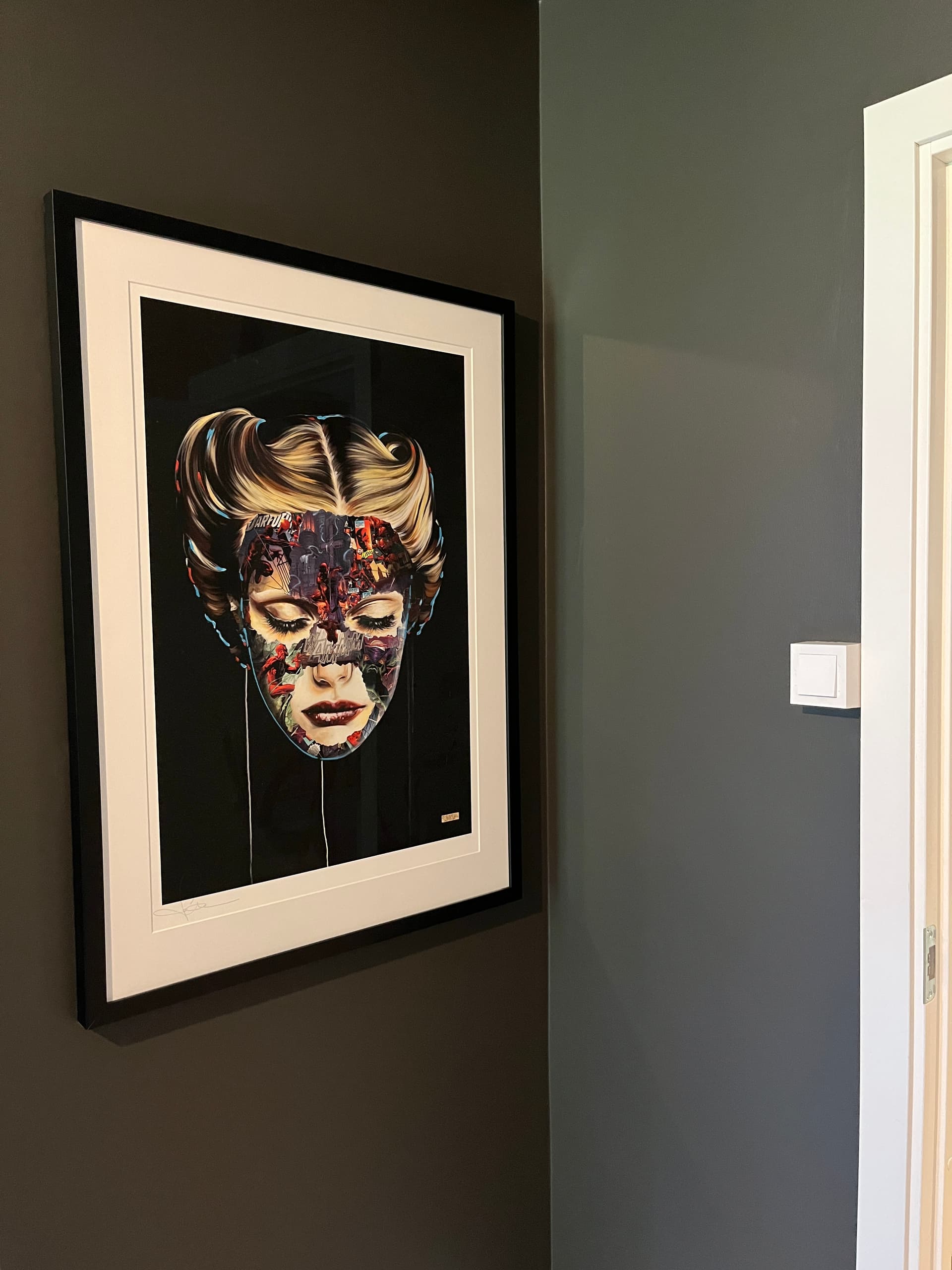 Innrammet med svart ramme og hvit paspatur (UV70 glass). Legger ved noen bilder også.