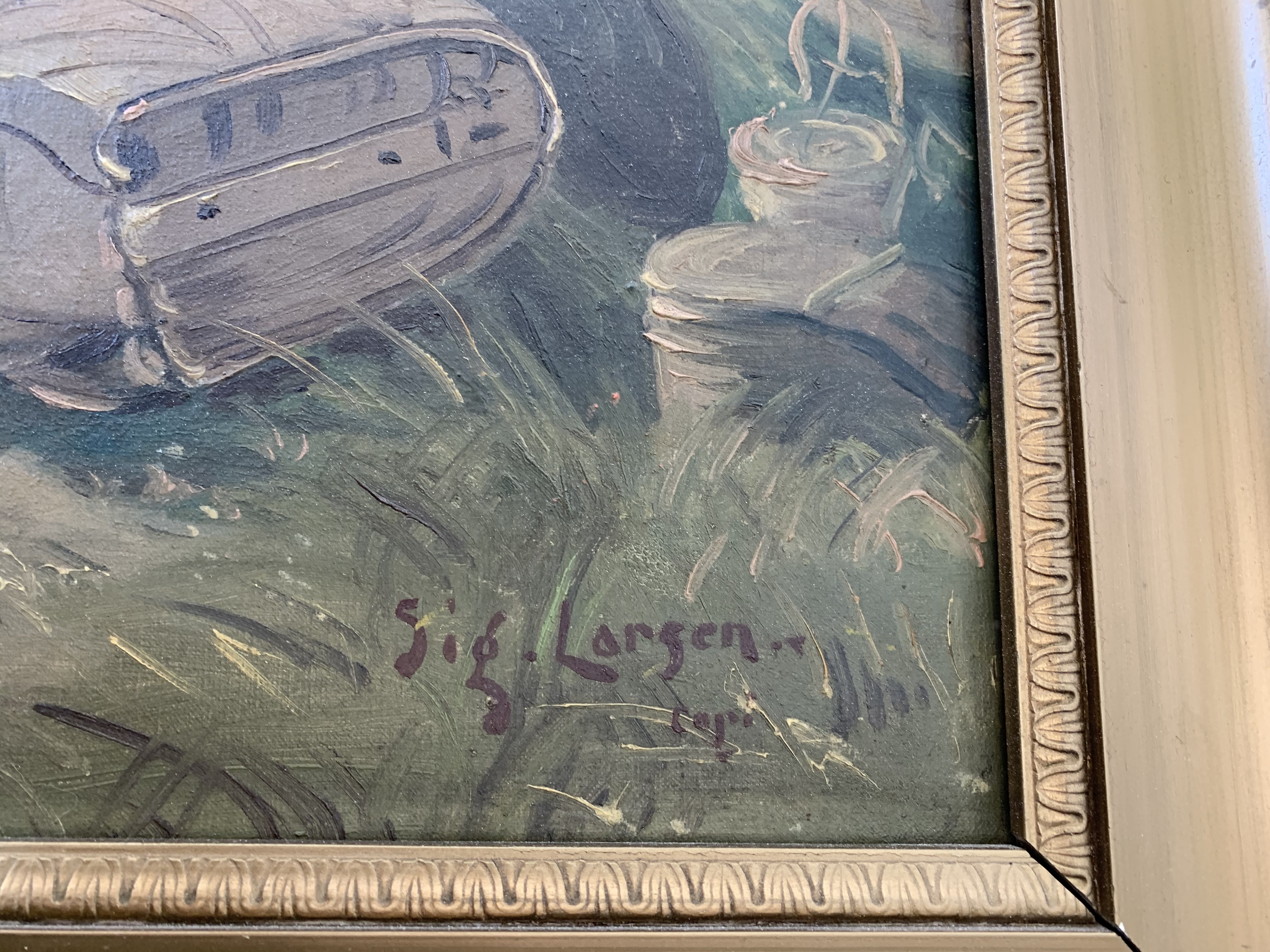 Arvet av min oldefar. Lurer på en ca verdi. Vet bare at maleriet er fra ca 40-50tallet. Av Sig. Larsen.