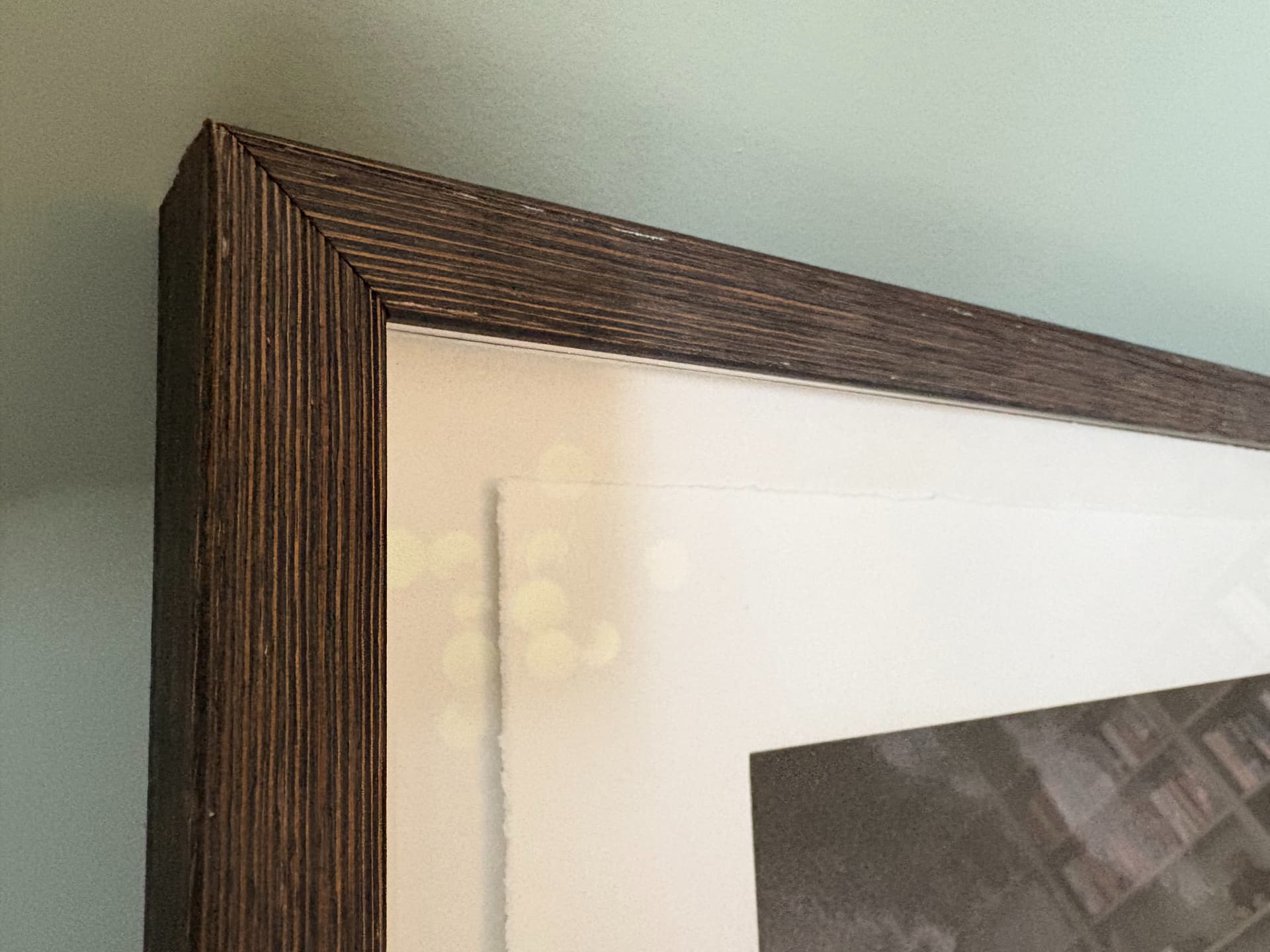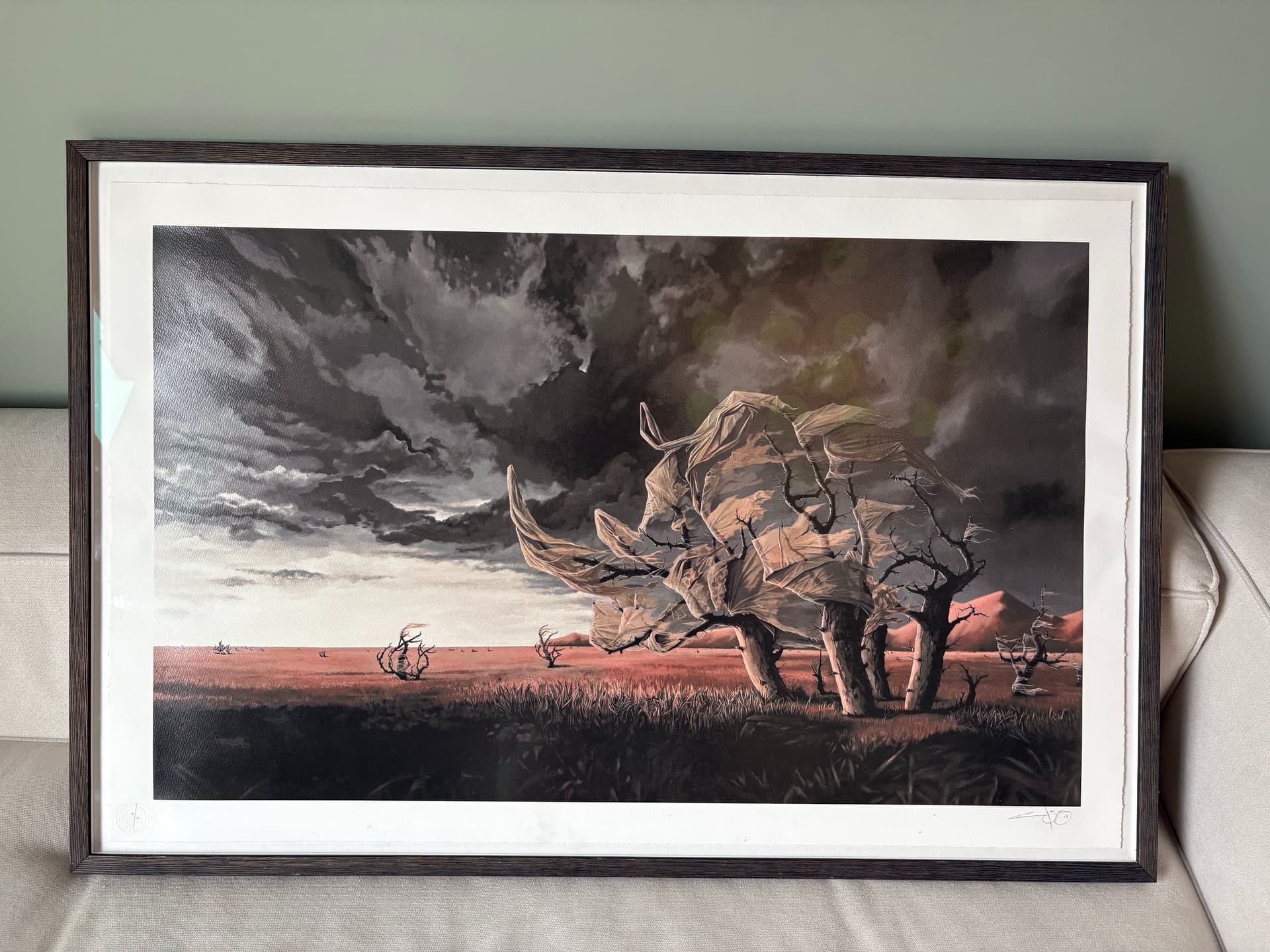 Rammet inn flytende med AR70 kunstglass hos Artifix i Oslo. Noen små merker på rammen fra flytting, men ikke til sjenanse.
