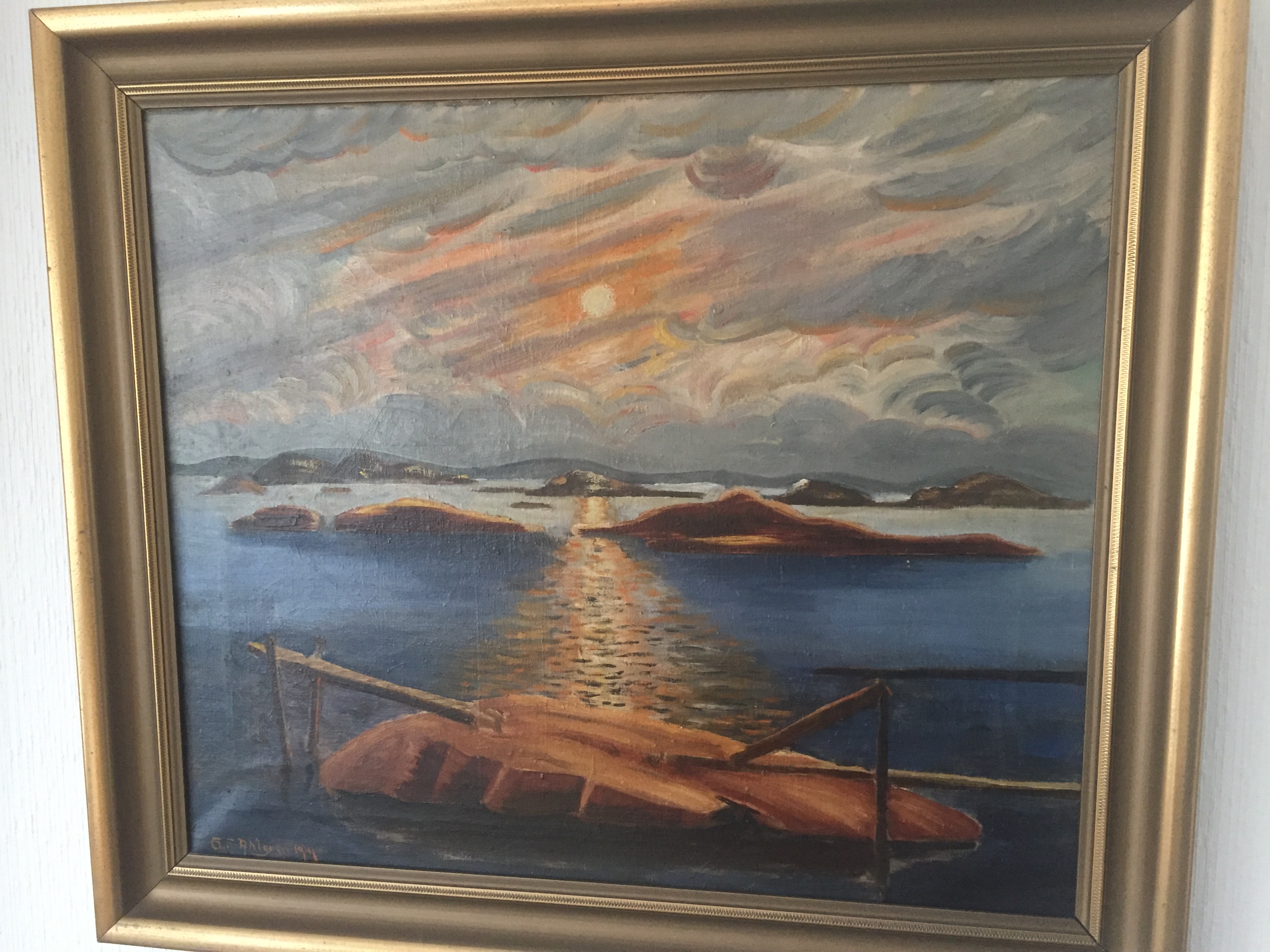 Hei prøver og finne ut om ett bilde jeg har på veggen hjemme er verdt noe, ser ut som et landskapsmotiv. Under står det G.F eller G.H ahlgren 1941. Tror det er et oljemaleri, har ikke noe særlig erfaring med kunst så all hjelp vil bli satt veldig pris p