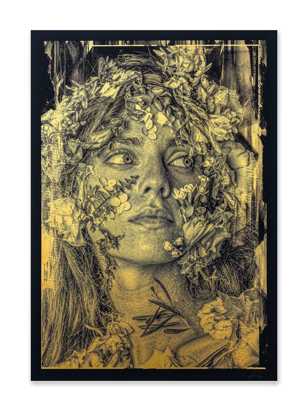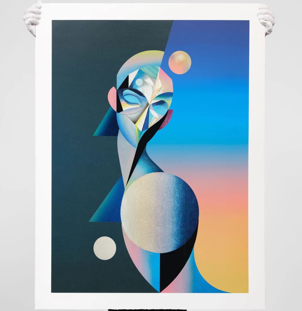 Hand pulled single layer screen print on 330gsm Plike paper with silkscreen varnish layer.